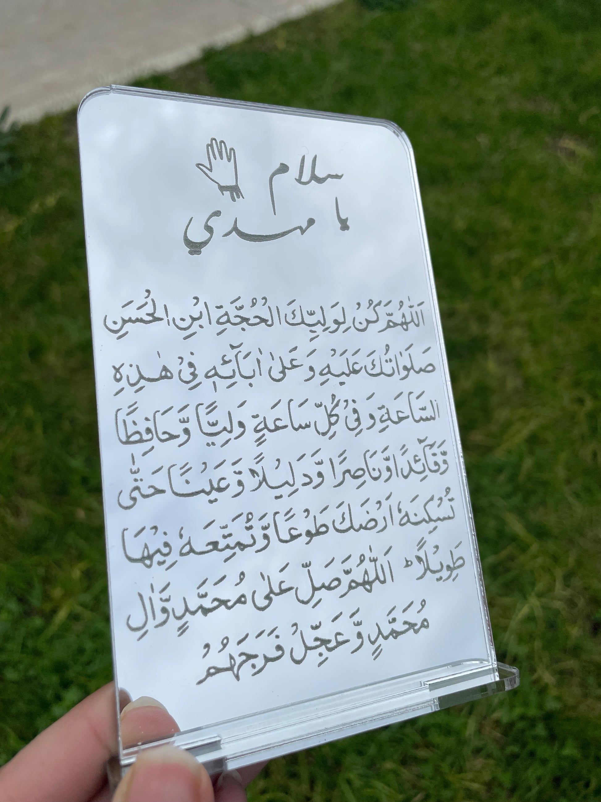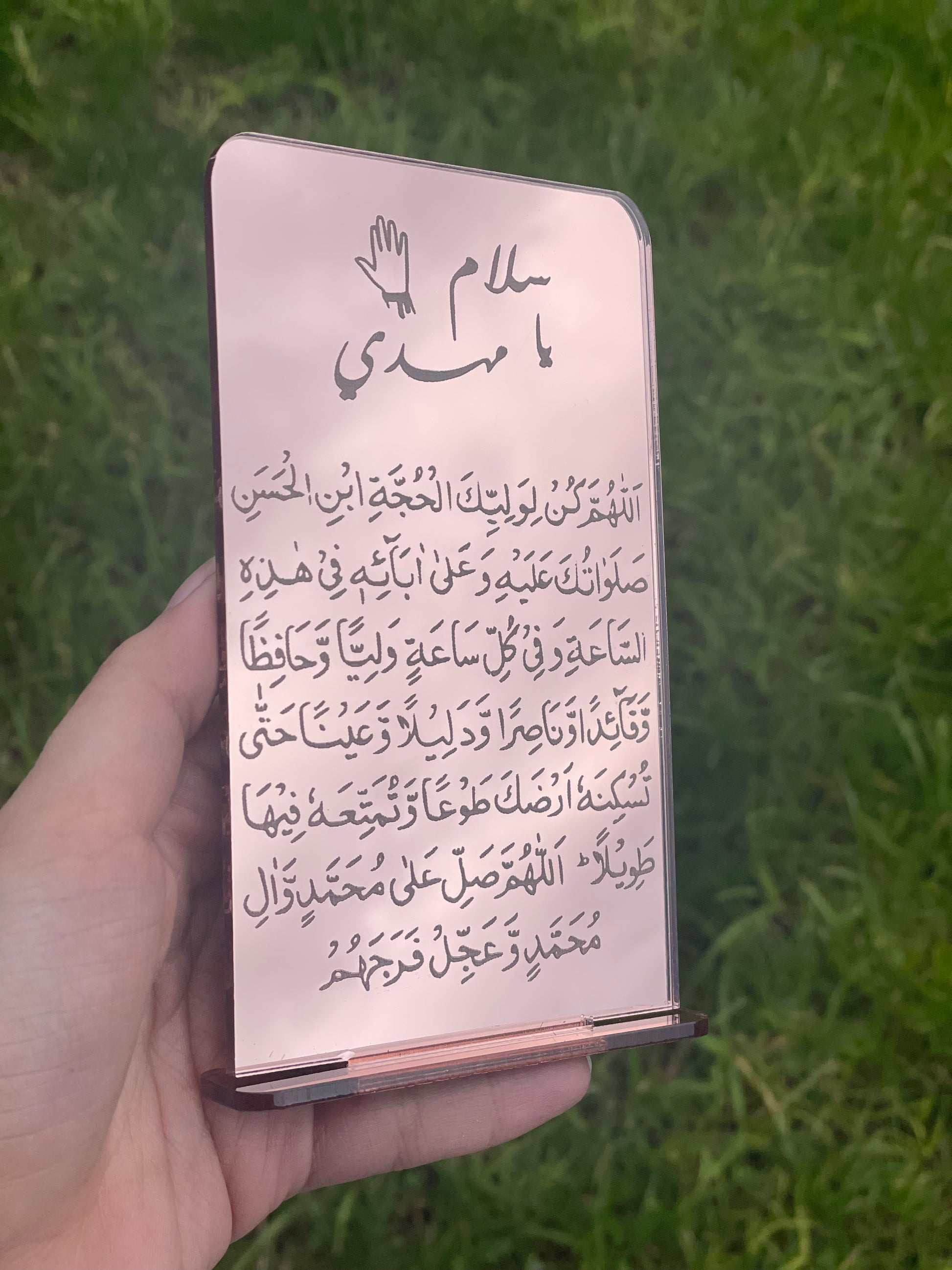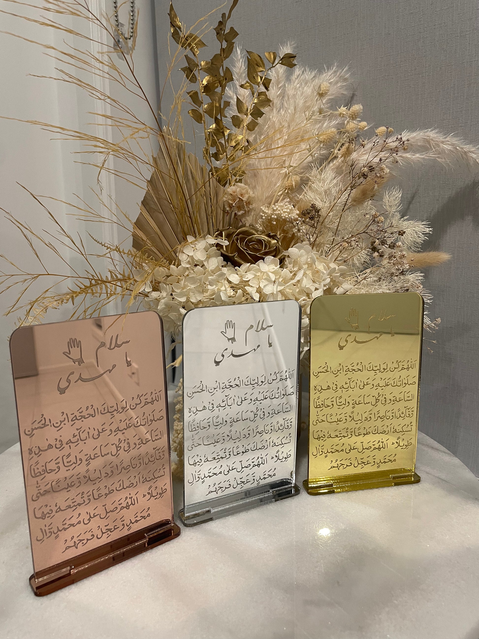 These stands are 15cm tall and 9cm wide and make the perfect gift as tabarukat to your reciters at events, to children on their staring/finishing of the Holy Quran (Bismillah/Ameen), and just as home keepsake for the constant reminder to pray for the return of Al Mahdi.